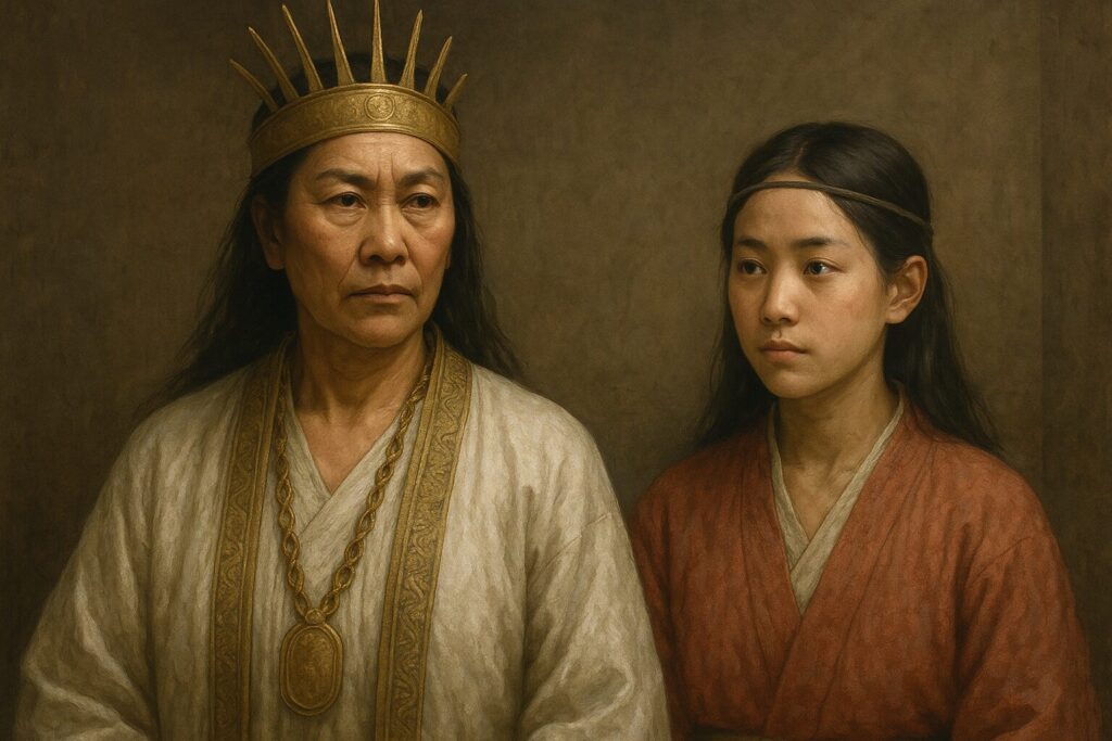 卑弥呼の死後、倭国は一時的な混乱期に入りましたが、再び安定をもたらしたのが「台与(とよ)」と呼ばれる若い女性でした。『魏志倭人伝』には「卑弥呼死して、倭国乱れ、男王を立てたが国は服せず、再び卑弥呼の宗女(むねめ)壹与(いよ)を立てた」とあり、彼女が卑弥呼の後継者として即位したことが明記されています。この「宗女」とは、血縁的に近い女性親族を意味するとされるため、台与は卑弥呼の娘、あるいは姪にあたる人物であった可能性が高いと考えられています。