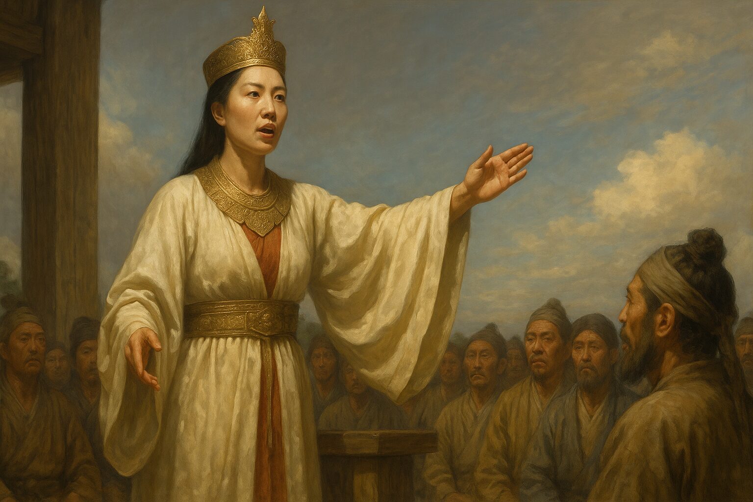 彼女は男性中心の政治構造にあって、女性でありながら宗教的信頼を背景に諸国の同意を得て、女王の座に就きました。これは、単なる権力の掌握ではなく、信仰と政治を融合させた新しい統治形態の誕生を意味します。