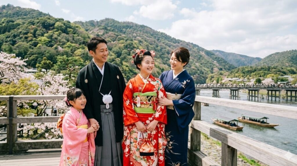 - ロケーション撮影のススメ:最近の主流は、写真館の中だけでなく、プロのカメラマンが同行する「ロケーション撮影」です。渡月橋のたもとや竹林の小径など、嵐山そのものをスタジオに見立てた撮影は、一生の宝物になります。法輪寺周辺の撮影許可を事前に得ている提携写真館を選ぶのがスムーズです。