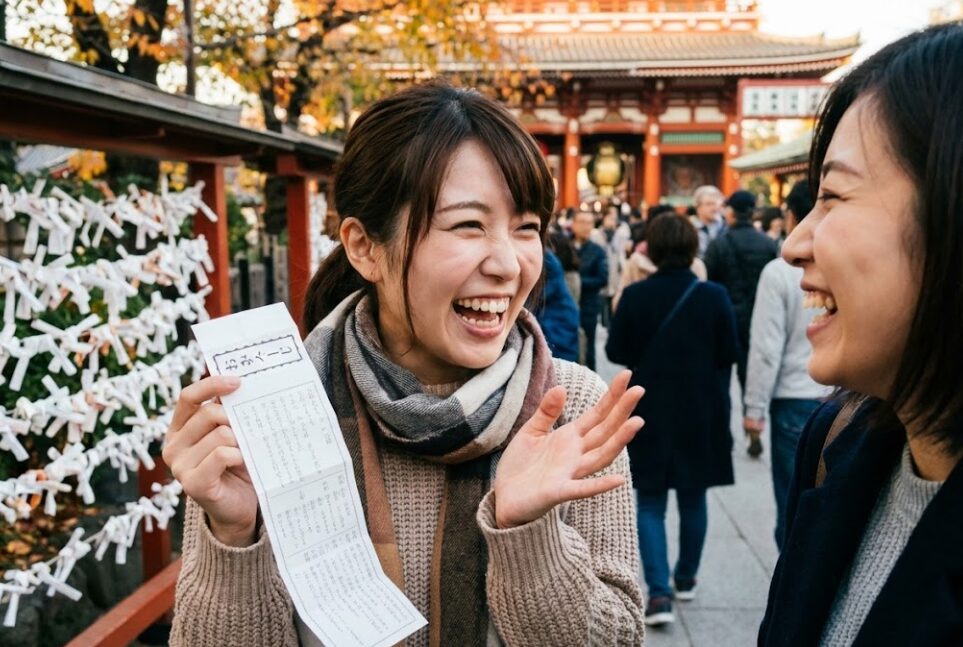 神社によっては、非常に現代的でユニークだったり、思わずズッコケてしまうほど辛辣だったりする、おみくじの面白い内容に出会うことがあります。例えば「恋愛:あきらめなさい」「待ち人:来ません。連絡もありません」といった、あまりにストレートすぎる表現です。こうした「衝撃的な内容」や「笑ってしまうような内容」を引いた時は、ぜひそれを周りの人に楽しく話してみてください。実はこれが、最高に効果的な「厄落とし」になるのです。