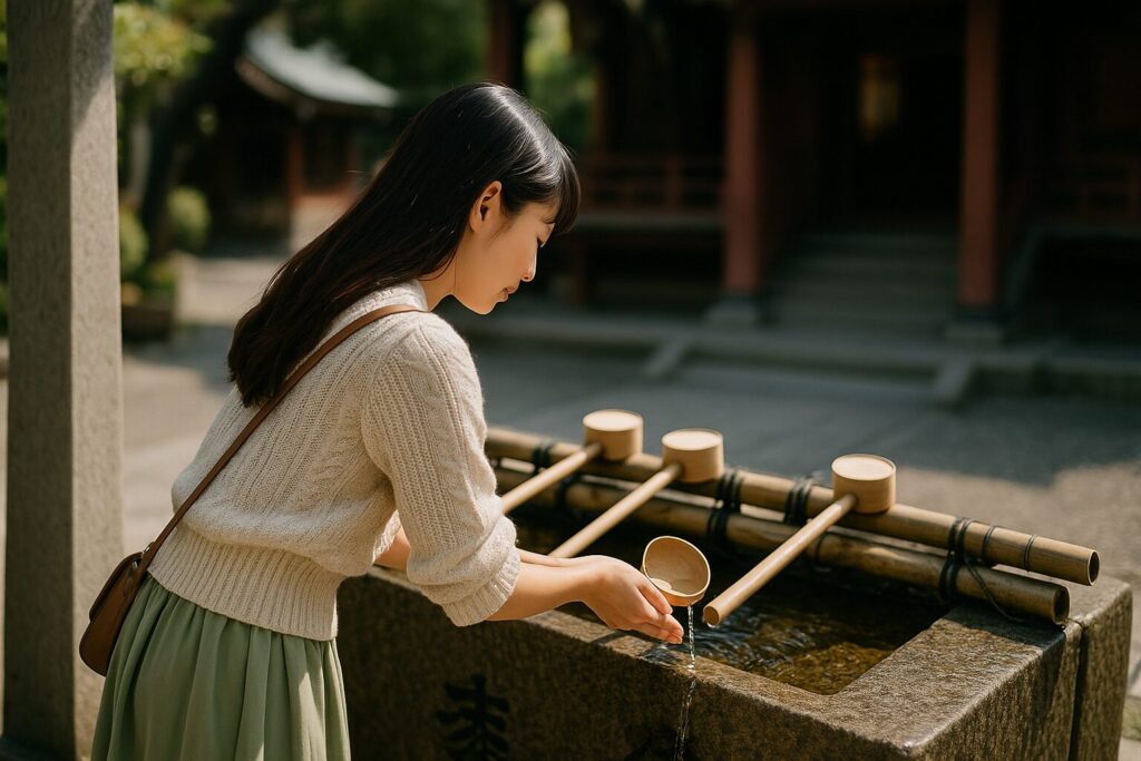 次に、手水舎(ちょうずや)で手と口を清めます。これは神社でも同様ですが、お寺ではより静かに行うことが大切です。柄杓を右手で取り、左手・右手・口の順で清め、最後に柄杓を立てて持ち手を洗い流します。音を立てずに静かに行うのがポイントです。