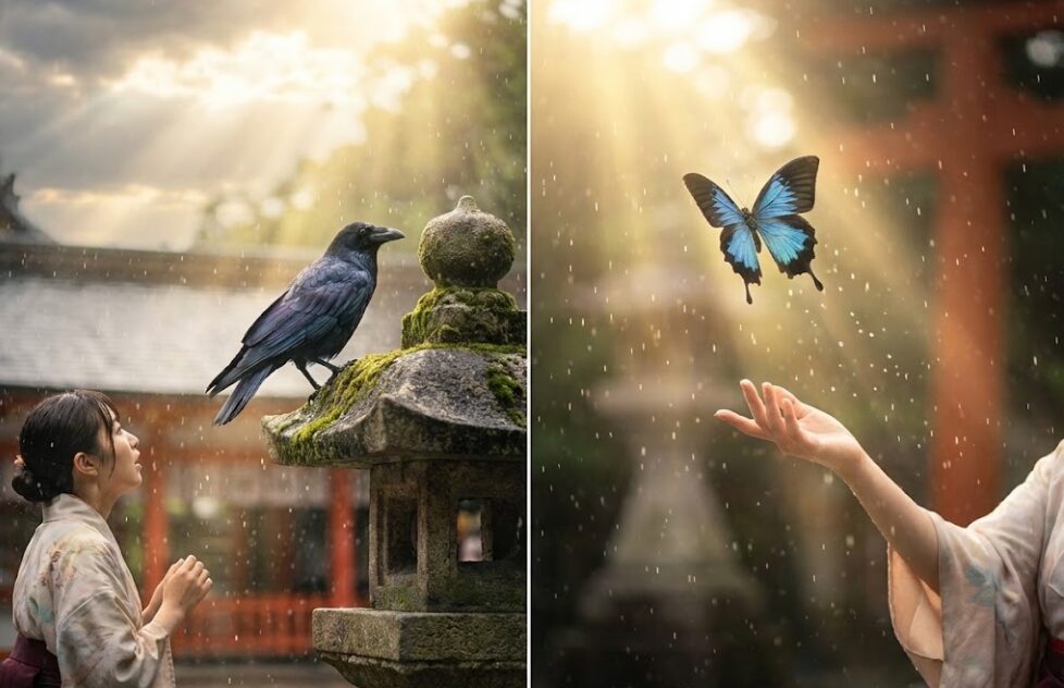 蝶は、スピリチュアルな世界において「変容」と「再生」の象徴です。参拝中に蝶があなたの周りを離れなかったり、衣服に止まったりするならば、それはあなたの人生が劇的に好転する前兆であり、魂のステージが一段階上がることを祝福されています。
