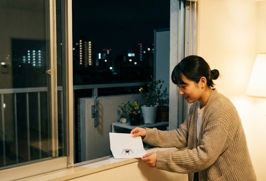 • 蜘蛛が苦手な場合は、コップや紙を使って傷つけずに外へ逃がすことで、殺生を避けつつ共存できる。